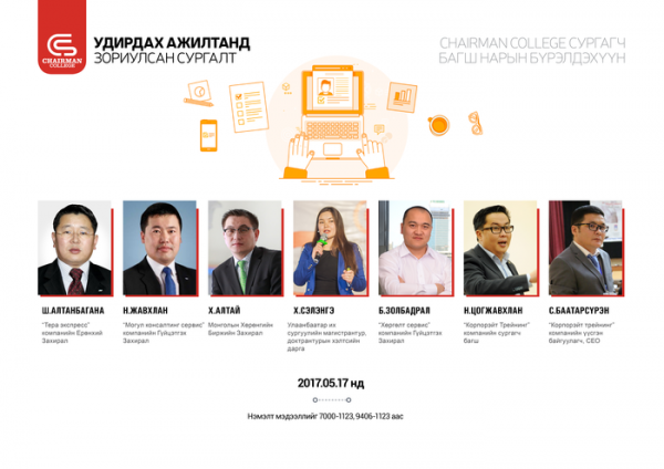 Монголын бизнесийн түүхийг бүтээсэн бизнесийн лидерүүдийн залгамж халаа чадварлаг удирдагчдыг бэлтгэх зорилготой CHAIRMAN COLLEGE удирдах ажилтанд зориулсан сургалт 2017.05.17 нд эхэлнэ.