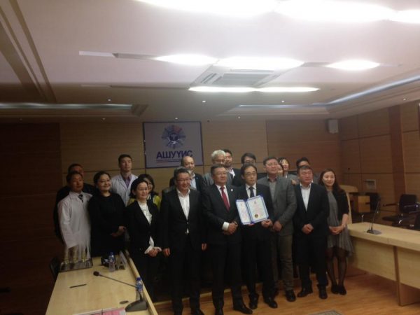 АШУҮИС-ийн эрдмийн танхимд 2017 оны 5 сарын 12-ны өдөр БСНУ-ын Анагаах ухааны Халлюмын Их сургуулийн профессор Сан Со Ле-д Монгол улсын АШУҮИС-ийн “Зочин профессор”-ын өргөмжлөл гардууллаа.