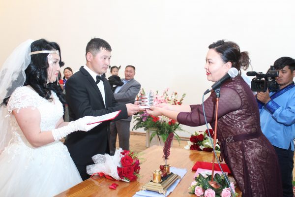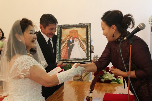Өрх гэрийнхээ гал голомтыг албан ёсоор бадрааж, хайртай дотны хүмүүсийнхээ хайр бахархал дунд хуримлаж буй эл хосуудын хувьд насан туршдаа бие биеэ үнэнчээр хайрлахаа амлаж, хуримын бэлзгээ баярын нулимстай солилцсон сэтгэл догдлом өдөр байсан юм. Энэхүү баярт мөчийг нь хуваалцахаар хүрэлцэн ирсэн эрүүл мэндийн байгууллагын удирдлагуудаас гадна НЭМГ-ын Эмнэлгийн тусламжийн хэлтсийн дарга М.Мөнхдэлгэр болон Захиргаа, төлөвлөлт, хяналт, шинжилгээ, үнэлгээний хэлтсийн албаны дарга Б.Одгэрэл нар бийрийн уран татлага, билэг төгс шүлэг найргийн мөрүүдтэй дурсгалын бичвэрийг хосуудад гардуулан өгч баяр хүргэлээ.