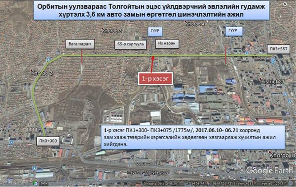 Орбитын уулзвараас Толгойтын эцэс Үйлдвэрчний эвлэлийн гудамж хүртэлх замын хөдөлгөөнийг хязгаарлана