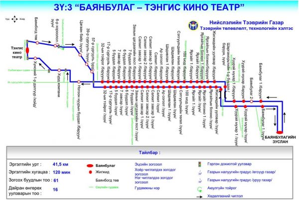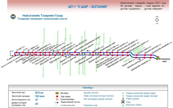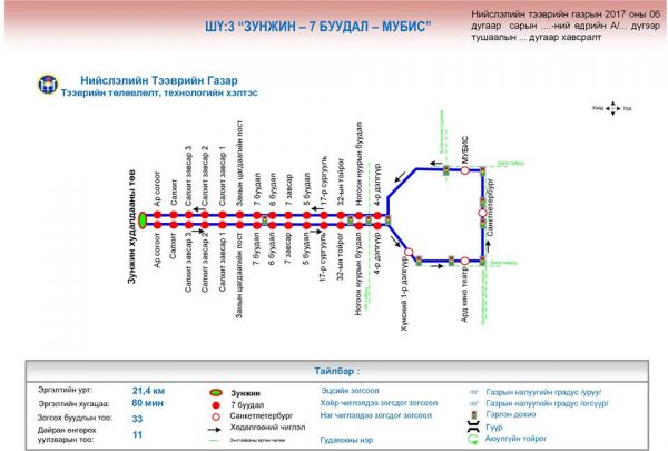 Мөн зуслангийн чиглэлийн зорчих эрэлтэд үндэслэн ЗҮ:1 “Гүнт-Жигжид-Тэнгис кино театр” чиглэлд 3 тээврийн хэрэгсэл, ЗҮ:2 “Гоодой-Тэнгис кино театр” чиглэлд 1 тээврийн хэрэгсэл , ЗҮ:3 “Баянбулаг-Тэнгис кино театр”чиглэлд 1 тээврийн хэрэгсэл тус тус үйлчилнэ. Үйлчилгээтэй холбоотой санал, хүсэлтийг 323176, 326352 дугаарын утсаар 24 цагийн турш хүлээн авч, шуурхай шийдвэрлэнэ гэж нийслэлийн Тээврийн газраас мэдээллээ.