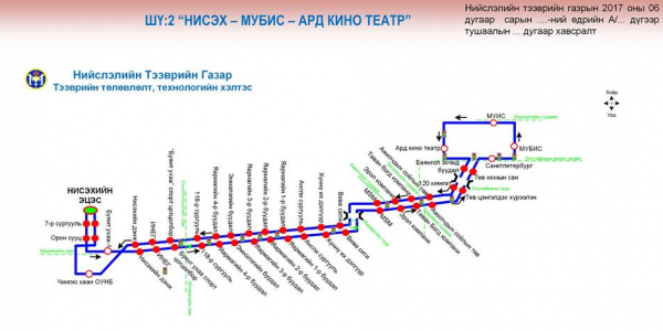 Зуны улирал эхэлсэнтэй холбогдуулан Улаанбаатар хотын иргэдийн шөнийн цагаар зорчих эрэлтийг хангасан, аюулгүй, найдвартай тээврийн үйлчилгээ үзүүлэх зорилгоор шөнийн тээврийн ШҮ:1 ”5 шар-Ботаник”, ШҮ:2 “Нисэх-МУБИС-Ард”, ШҮ:3 “Зунжин-7 буудал-МУБИС” чиглэлд нийтийн тээврийн автобус үйлчилнэ. Тус чиглэлд үйлчилгээнд явах автобус 22.30 цагаас 01.30 цаг хүртэл явна.
