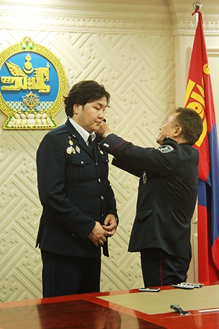 “Чингис хаан” одонт, Монгол Улсын гавьяат жүжигчин, цагдаагийн ахмад Ганбаатарын Ариунбаатарт Цагдаагийн ерөнхий газрын даргын тушаалаар цагдаагийн хошууч цол олголоо.