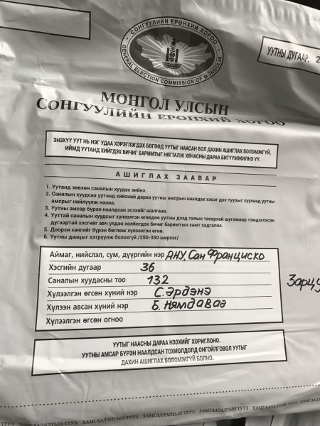 Гадаад улсад байгаа иргэдээс сонгуульд оролцож саналаа өгөхөөр 7,209 иргэн бүртгүүлж тэдгээрээс 4,816 иргэн буюу 66.8 хувь нь санал авах байранд очиж саналаа өгсөн байна.