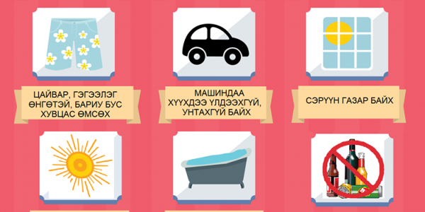 Цаг уур, орчны шинжилгээний газрын “Цаг агаарын урьдчилан сэргийлэх мэдээ”-гээр ойрын өдрүүдэд +30 хэмээс дээш халж, бүгчим халуун болох төлөвтэй байгаа тул нийслэлийн Эрүүл мэндийн газраас иргэд та бүхэнд нарших, наранд цохиулахаас сэргийлэх зөвлөмжийг хүргэж байна гэж нийслэлийн Эрүүл мэндийн газраас мэдээллээ.