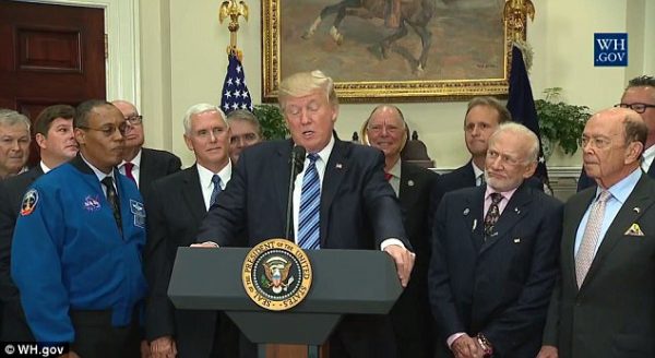 АНУ-ын ерөнхийлөгч Доналд Трамп өнгөрсөн баасан гарагт сансрын орон зай, аюулгүй байдлын талаар Цагаан ордны дугуй танхимд үг хэлж байжээ. Энэ үеэр түүний хажууд зогсож байсан сансрын нисгэгч Базз Олдрин нүүрний хувирлаа барьж чадсангүй инээдтэй царай гаргасан бичлэг интернетэд шуугиан тарилаа. Ерөнхийлөгч Трамп энэ үеэр Үндэсний сансрын зөвлөлийг шинэчлэх ёстой гэх зэргээр ярьж эхэлсэн нь сансрын нисгэгчийн санаанд нийцээгүй бололтой хөмсгөө атируулж тэсэл алдаж байлаа.
