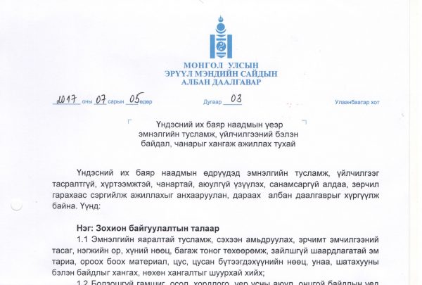 1.7 Нийтийг хамарсан хордлого, осол гэмтэл, халдварт өвчний дэгдэлт болон эмнэлгийн тусламж, үйлчилгээний ноцтой алдаа, зөрчил гарсан үед хугацаа харгалзахгүй Эрүүл мэндийн яамны хариуцлагатай жижүүрт шууд мэдээлнэ. (Утас- 323002)