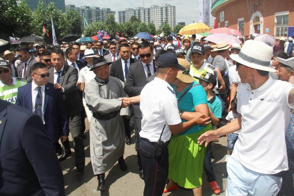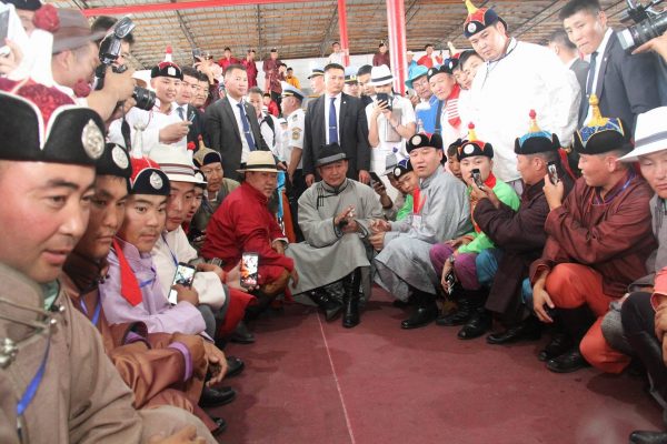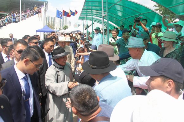 Монгол Улсын Ерөнхийлөгч Халтмаагийн Баттулга Тулгар төрийн 2226 жил, Их Монгол Улс байгуулагдсаны 811, Ардын хувьсгалын 96 жилийн ой, үндэсний их наадмыг нээн үг хэлж, баяр наадмын нээлтийн ёслол, хүчит бөхийн барилдааны нэгийн давааны эхлэлийг үзэж сонирхсоныхоо дараа сурын талбайд зочилж эрхий мэргэн харваачид, тэнд хуран цугларсан наадамчин олонтой мэндчиллээ.
