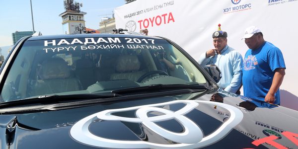 Тоёота моторс корпораци дөрөв дэх жилдээ Үндэсний их баяр наадмын албан ёсны ивээн тэтгэгчээр ажиллаж байгаа юм. Автомашин гардуулах ёслолын үеэр Тоёота Моторс корпорацийн Ерөнхий менежер Сэйжи Куррокава “Та бүхэнд энэ өдрийн мэнд хүргэе. Монгол Улсын арслан Ц.Содномдорж танд улсын их баяр наадамд ес даван түрүүлсэнд чин сэтгэлээсээ баяр хүргэж байна. Үндэсний их баяр наадмын түрүү бөхөд жийп машины хаан болох “Ланд крузер-200” автомашинаа бэлэглэх боломж бүрдэж байгаа нь бид бүхний хувьд нэр төрийн хэрэг юм. Та бүхэн сайхан наадаарай” хэмээлээ.