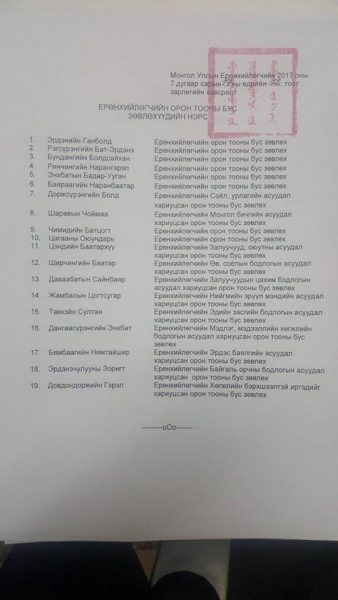 Шинэ Ерөнхийлөгч Х.Баттулгын анхны гэсэн тодотголтой улс төрийн үйл ажиллагаанууд үргэлжилж байна. Тэрээр өчигдөр өмнөх Ерөнхийлөгчид зөвлөж байсан орон тооны бус зөвлөхүүдийг албан тушаалаас нь чөлөөлөх шийдвэр гаргажээ. Тодруулбал, Төрийн соёрхолт дуучин Д.Болд, Хөдөлмөрийн баатар, Гавьяат тамирчин, Олимпийн аварга Э.Бадар-Ууган, бидэнд Форумын гэж танигдсан Дангаасүрэнгийн Энхбат, эмч Б.Болдсайхан, МАК-ийн Б.Нямтайшир нарын орон тооны бус зөвлөхүүдийг чөлөөлсөн байна.