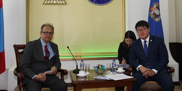 Нийслэлийн Засаг даргын Ногоон хөгжил, агаарын бохирдлын асуудал хариуцсан орлогч Ж.Батбаясгалан НҮБ-ын Бүсийн хөгжлийн төвийн байгаль орчны хөтөлбөрийн зохицуулагч С.Р.С Мохади, Байгаль орчны судлаач, доктор Ганеш Раж Жоши нарыг хүлээн авч уулзлаа.