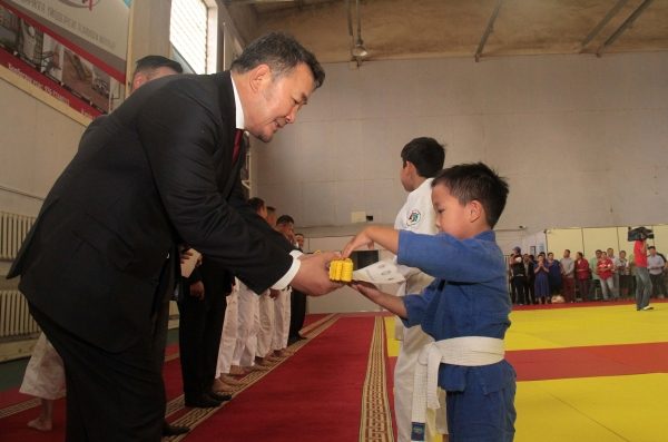 Монгол Улсын Ерөнхийлөгч Х.Баттулга өнөөдөр өсвөрийн жүдочдод бүс гардуулж, баяр хүргэн, спортын амжилт хүслээ. Монгол Улсын Ерөнхийлөгч Х.Баттулга Монголын жүдо бөхийн холбооны Ерөнхийлөгчөөр 2006 оноос хойш ажиллаж байгаа, мөн Олон улсын жүдо бөхийн холбооны Бодлогын зөвлөлийн Ази тивийг хариуцсан тэргүүнээр ажилладаг юм. Монгол Улсын Ерөнхийлөгч Х.Баттулгын үүсгэн байгуулсан жүдогийн акедемид суралцаж, шалгалтаа амжилттай өгсөн өсвөрийн 66 тамирчин шар, улбар шар, ногоон, цэнхэр, бор бүс сертификатын хамт гардан авлаа. Өсвөрийн жүдочдод бүс гардуулах ёслолд хүрэлцэн ирсэн зочид, тамирчид, эцэг эхчүүдэд хандан Монгол Улсын Ерөнхийлөгч, Монголын жүдо бөхийн холбооны Ерөнхийлөгч Х.Баттулга “Манай Жүдогийн академи байгуулагдаад нэлээд олон жил болж байна. Монголын өсвөр үе, залуучууд хүүхдүүд багаасаа хөдөлмөрч, тэвчээртэй болж бие бялдрын хөгжил нь сайжирч, интернэт орчинд бус, спорт зааланд цагаа илүү үр бүтээлтэй өнгөрүүлэхэд Жүдогийн академийн байгуулагдсан зорилго нь оршиж байгаа юм. Өнөөдөр цол ахиулж бүс гардуулах ёслол болж байна. Академийнхаа багш дасгалжуулагчид, хүүхдүүдэд баяр хүргэе” гэсэн юм.