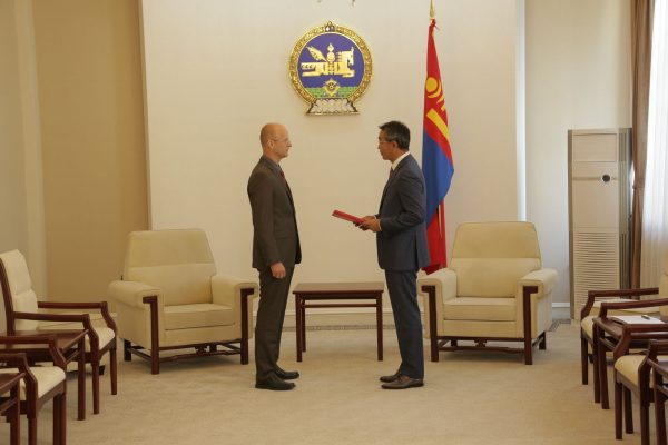 НҮБ-ын Хүүхдийн Сангаас Монгол Улсад суух Суурин төлөөлөгчөөр томилогдсон Алекс Хайкенс Гадаад харилцааны сайд Ц.Мөнх-Оргилд итгэмжлэх захидлаа өргөн барилаа.