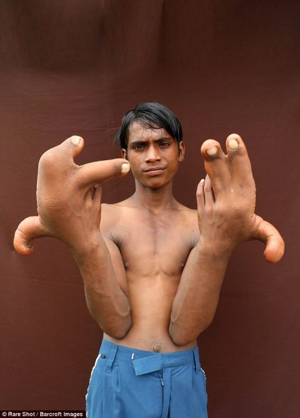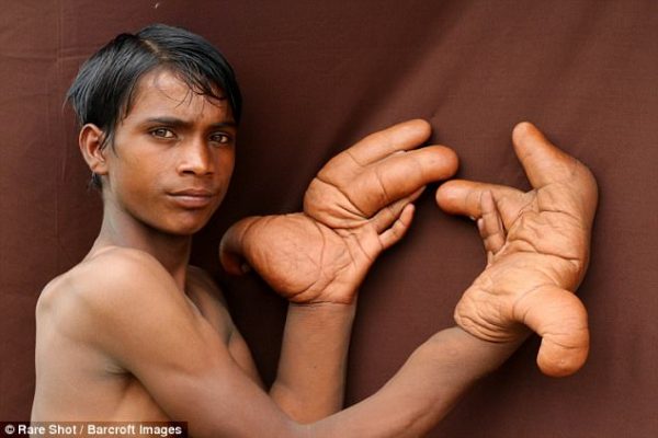 Энэтхэгийн Уттар Прадеш хотод аварга гартай 12 настай Тирик амьдарч байна. Түүний гар төрснөөс нь хойш  өдрөөс  өдөрт томорсоор ийм дүр төрхтэй болжээ.