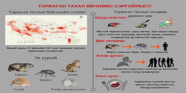 Иргэд хөдөө орон нутгаар амарч зугаалахдаа тарваганы түүхий мах, эд эрхтэнг эмчилгээний зорилгоор хэрэглэхгүй байх, мэрэгчийн үхсэн сэг зэмтэй харьцахгүй байх,тарваганы бөөс болон бүүрэгт хазуулахгүй байх, хот руу тарваганы түүхий мах, тулмыг тээвэрлэж оруулж ирэхгүй байхыг нийслэлийн Эрүүл мэндийн газар, Зоонозын өвчин судлалын үндэсний төвөөс сэрэмжлүүлж байна. Тарваган тахал өвчний идэвхжилийн улиралчлал эхэлсэнтэй холбогдуулан ард иргэдэд уг өвчнөөс урьдчилан сэргийлэх сэрэмжлүүлэг, мэдээлэл, зөвлөмжийг ийнхүү хүргэж буй юм. Хэрэв тарвага, зурам өвчих, мах эвдэх үедээ арьс салстаа гэмтээсэн, бөөс, бүүрэгт хазуулсан тохиолдолд мэргэжлийн байгууллагад хандах шаардлагатайг олон нийтэд анхаарууллаа гэж нийслэлийн Эрүүл мэндийн газраас мэдээллээ.