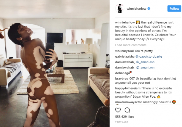 Винни Харлоу инстиграм хуудаснаа “Гол ялгаа нь миний арьс биш ээ. Харин бусдын үзэл бодлоор өөрийнхөө гоо үзэсгэлэнг тодорхойлдоггүйд л байгаа юм. Үүнийг мэддэг болохоор би үзэсгэлэнтэй. Өнөөдөр (бас өдөр бүр) өөрийн өвөрмөц гоо үзэсгэлэнгээ мэдэр!” хэмээн бичжээ.