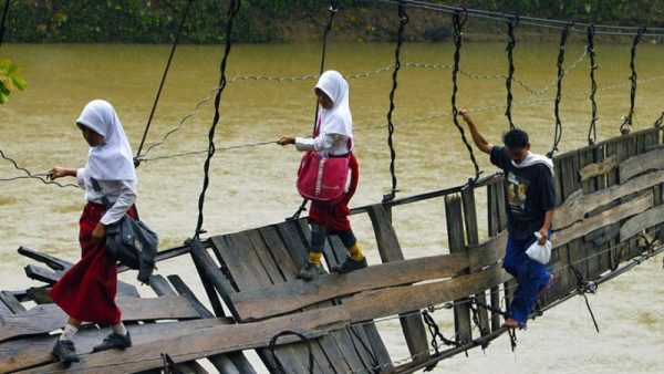 Индонезын Лебакт (Lebak) сурагчид эвдэрсэн дүүжин гүүрээр дамжин их усыг гатлан хичээлдээ явдаг байсан байна. Гэхдээ Индонезын хамгийн том ган үйлдвэрлэгч компани энэ гүүрийг шинэчлэн барьсанаар хүүхдүүд аюулгүй замаар зорчин хичээлдээ явдаг болжээ.
