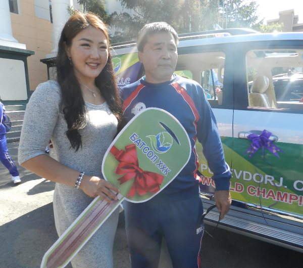 -Тийм ээ.Наадмаар бөх үзээд сууж байгаад дэлхийн бөх үндэсний бөх хоёрыг харьцуулж ярилцсан.Дэлхийн тэмцээнд түрүүлбэл улсынхаа нэрийг гаргана. Үндэсний бөхөөс дутаж болохгүй. Чи бол сайн барилдаг гэж Н.Батсайхан ах хэлж байсан. Хэрэв дэлхийн аваргад түрүүлээд ирэхийн бол би чамд машин өгнө гэж амлаж байсан. Би ч амлалтдаа хүрсэндээ баяртай байна. Н.Батсайхан ах ч амлалтдаа хүрсэн.
