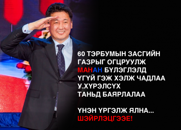 Магадгүй энэ бүхний өөдөөс сөрөн тэмцэж МАНАН-д барьцаалагдалгүй мафийн засаглалыг өвдөглүүлчихээд байгаа Хүрэлсүх болон түүний нөхдөд олон нийт итгэлээ дайж сэтгэлээ ачаалж нүүх нүүдэл суух суудлыг ажиглаж байгаа нь нууц биш. Монголын нийгэм түүний өгсөж уруудсан өнөөгийн хэмжээнд хэрхэн хүрснийг нь хэдийнээ мэддэг болчихсон. Хийсэн үйлдэлүүд таашгүй цочмог тэсрэлттэй ч түүнийхээ араас харин ил гарч шулуухан явчихдаг. Сумаа тавиад нумаа нуухаа хүсдэггүй. Үйлдэл үг хоёроо үнэнээр хүлээчихдэг. Улс төрчийн зальжин зан хульжин үйлдэл түүнд удамшаагүй ховор тогтоц. Тийм л учраас түүнд нууцлаад байх юм байдаггүй. Гарал угсаа амьдрал үйлс алдаа оноо нь нүднээ ил учраас олон нийт түүнд талтай байдаг биз. Ямартай ч нам төрийн гал гамшиг зуд гуравтаа барьдаг ганц зэмсэг нь явж ирсэн түүний төрд нүүрэлсэн өнөөгийн гамшгийг хэрхэн цэвэрлэх нь хамтрагч нөхдийн нь зүтгэл хамаг олны итгэл сэтгэлийн дэмжлэг мэдэх хэрэг болоод байна.