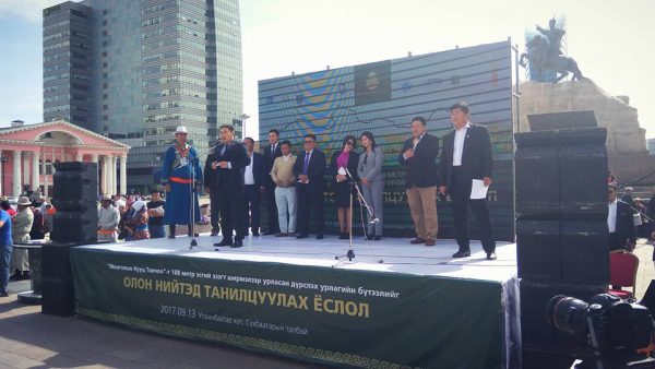 Монголын нууц товчооноос сэдэвлэн Чингис хааны амьдралын гол гол үйл явдлуудыг 108 метр эсгий дээр зээгт ширмэл оёдлоор урласан нэгэн хосгүй бүтээл Их жанжин Д.Сүхбаатарын талбайд ёслол төгөлдөр нээлтээ хийж Монголын ард түмний хүртээл боллоо.