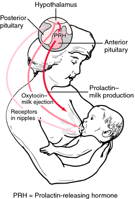 Хөхний толгой хэсэгт сүү үүсэх үйл явцыг идэвхжүүлдэг пролактин дааврын рецептор байрладаг. Тийм болохоор хөхний толгойгоо имэрэх үед рецептор цочирч сүү үүсэх үйл явцыг идэвжүүлдэг байна. Энэ бол гадаад нөлөөллөөр идэвжүүлэх арга. Харин дотоод нөлөөллөөр идэвхижүүлэгч нь серотонин даавар.