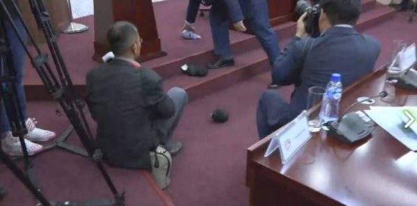 Нийслэлийн Иргэдийн Төлөөлөгчдийн Хурлын XI хуралдаан эхлэх үеэр НИТХ-ын дарга асан Ц.Сандуй руу МАХН-ын бага чуулганы гишүүн 5-6 боодол оймс шидэн, эсэргүүцлээ илэрхийлэв.