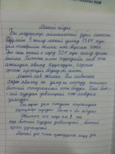 Бидний ирээдүй болсон хүүхэд багачууд айдсын тухай зохион бичлэгээр ингэж бичсэн байна. Тэд замын хөдөлгөөний ослоос болж олон хүний амь нас эрсдэж байгаа тухай, жолооч нар анхаарал болгоомжтой машинаа жолоодох тухай, явган зорчигч гарцаар гарах тухай бяцхан гартаа барьсан үзгээрээ томчууд бид тэр бүр харж анзаардаггүй зүйлийг сэтгэлд буутал бичжээ.