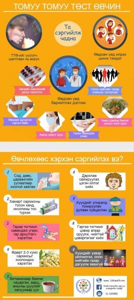 Гэр орондоо чийгтэй цэвэрлэгээ тогтмол хийх, цэвэр агаар оруулахаас гадна гарын ариун цэврийн дэглэмийг сайтар сахиж, илчлэг сайтай хоол хүнс, витаминаар баялаг аарц, чацарганы шүүс хэрэглэж заншсанаар үр хүүхдээ амьсгалын замын халдварт өвчнөөс урьдчилан сэргийлж, эрүүл өсч бойжих нөхцөл бололцоог нь хангаж байгаа хэрэг гэж зөвлөлөө.