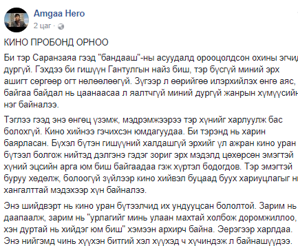 Энэ шийдвэрт нь кино уран бүтээлчид их ундууцсан бололтой. Зарим нь даапаалж, зарим нь “урлагийг минь улаан махтай холбож доромжиллоо, хэн дуртай нь хийдэг юм биш” хэмээн архирч байна. Эерэгээр хар л даа. Энэ нийгэмд чинь хүүхэн битгий хэл хүүхэд ч хүчиндэж л байнашүүдээ. Тэсрэх гэсэн нийгмийн захиалга ч юм билүү. Тэрэн дээр ажиллах нь урлагийнхны үүрэг шахуу юм байгаа биз дээ. Киноны сэдэв гэдэг зүйл гаднаас хуулж, эсвэл зүүдэнд нь гэнэт мэргэн санаа бууж нтр төрдөг тийм динозаврын мянганы тэмдэг шиг ховрын юм байх албагүй биз дээ.