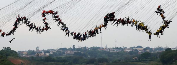 Бразил, Хортоландиа. 245 хүн олстой үсрэх дэлхийн дээд амжилтыг тогтоохоор 30 метрийн өндөртэй гүүрэн дээрээс бие биетэйгээ холбогдсон байдалтайгаар үсэрч байна.