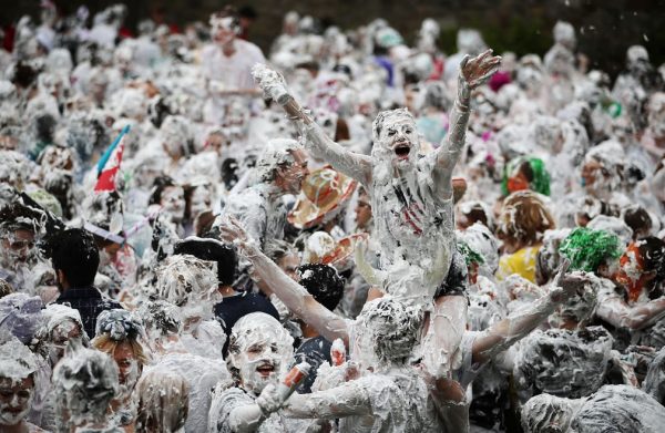 Шотланд, Фифэ. “St Andrews”-гийн их сургуулийн оюутнууд хөөсөөр байлдах уламжлалт баяраа тэмдэглэж байна.