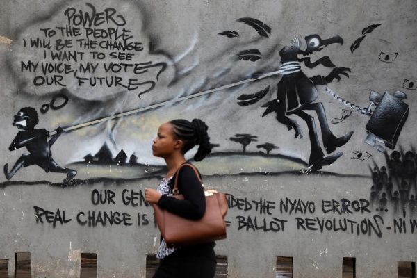 Кени, Найроби. Эмэгтэй зурагт хананы хажуугаар алхаж байна.