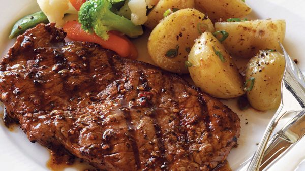 Хийх арга: Үхрийн махаа давс болон нунтаг чинжүүгээр амталж өгнө. Хайруулын тавгаа халааж, амталсан махаа 13-15 минут орчим шарна. Жижиг саванд цөцгий, гич болон дарс зэргийг холино.