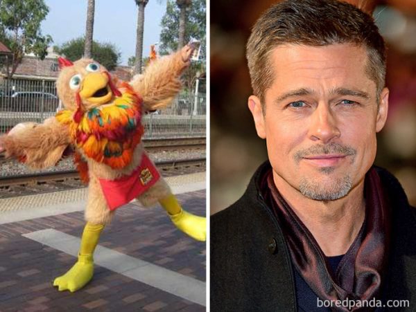 Холливудын алдартай жүжигчин Бред Питт “Элло Полло Локо” ресторанд зориулж тахиа шиг хувцаслаж үүдэн дээр нь зогсдог байжээ.