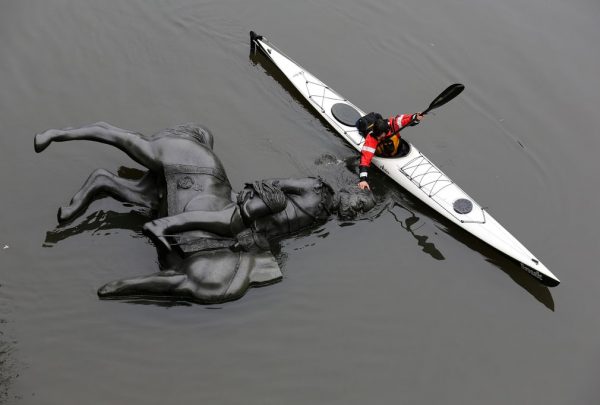 Канад, Торонто. Эдвард VII-гийн хүрэл хөшөөг урлагийнхан төсөлт ажилдаа ашиглагдахуун болгов.