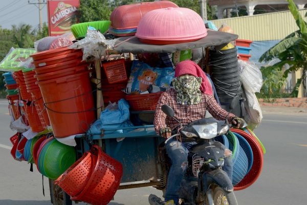 Камбож, Пном Пэн. Хотын захаар худалдаачин явж байна.