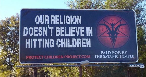 Сатанчууд үгээ хэлэхийг хүсчээ. АНУ-ын Техас мужид “The Satanic Temple” нэртэй бүлэг байдаг бөгөөд “Three River” хотод “Бидний шашин хүүхдэд гар хүрэх явдлыг дэмжихгүй” гэсэн утга бүхий пайзыг өлгөсөн байна. Тэд сургуулиудад хүүхдийн биед гар хүрэх явдал байсаар байна гэдгийг хэлэхийг хүсч. “The Corpus Christi Caller-Times” сонинд зарим хүүхэд багшийгаа үл хүндэтгэх үйлдэл хийсэн л бол цохиулдаг болохоо мэдээлсэн явдал гарсан. “The Satanic Temple” өөрсдөө Сатаныг чөтгөр бурхны аль нь ч биш гэж үздэг ба “Хүний бие бол халдашгүй зүйл” гэжээ. Мөн “Бид бол хүмүүнлэг үйлсийн бүлэглэл” гэсэн.