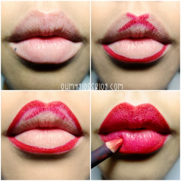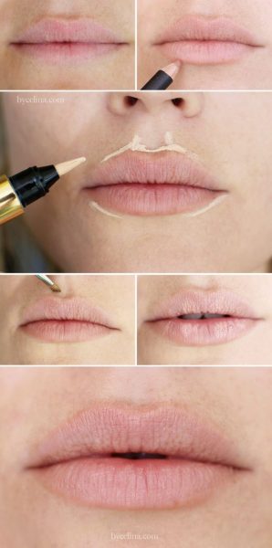 Уруул хүрээлэгчээр дээд уруулаа “x”-лж зураад дараад нь уруулын будгаар будвал зузаан харагддаг.
