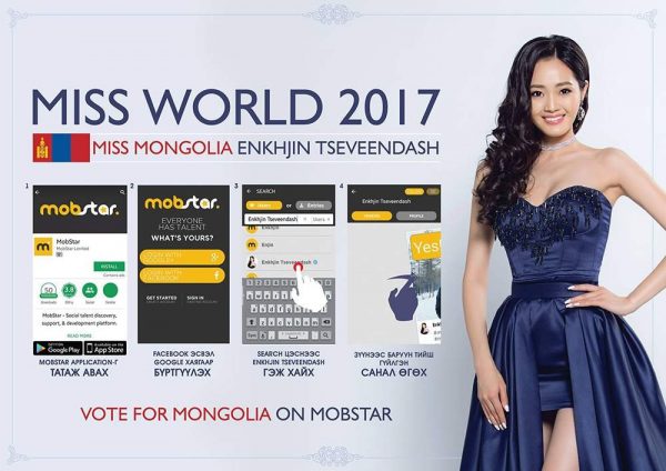 Одоогоор Mobstar application дээр, 2-р байрт өрсөлдөж байгаа. 1-р байрт явж байгаа Мексик улс гэхэд 120 сая хүн амтай. Бидний хувьд цөөн хүн амтай учир нэг хүн олон санал өгөх тусам түрүүлэхэд ойртоно. Монгол улсын нэр хүндийг дэлхийн тавцанд өргөн, амжилттай оролцож буй Ц.Энхжинг дэмжиж, бүх Монголчууд саналаа өгнө үү гэж уриалж байна.