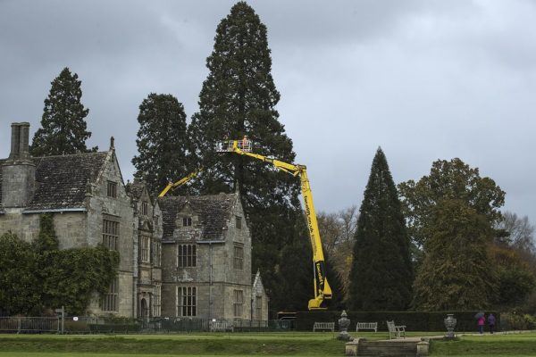 36 метрийн өндөртэй модыг зул сарын баярт зориулж чимэглэж байна.