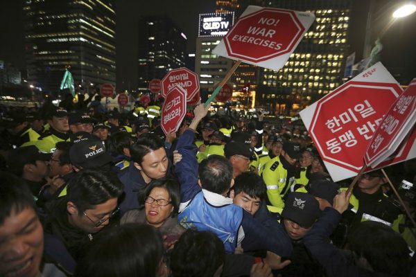 Трамп Азийн орнуудад есөн өдрийн албан ёсны айлчлал хийж байгаа ба түүнийг нутагт нь ирэхийг эсэргүүцсэн жагсагчид цагдаа нартай тулж байна.