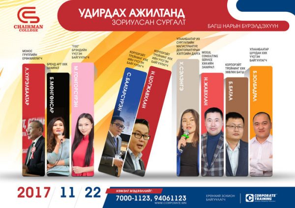 “CHAIRMAN COLLEGE” сургалт 2017 оны 11-р сарын 22-нд эхэлнэ.