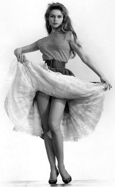 Францын секс бэлгэ тэмдэгт зүй ёсоор тооцогддог алдарт дуучин, жүжигчин, загвар өмсөгч Брижит Бардо 1934 оны есдүгээр сарын 28-нд Парисын чинээлэг гэр бүлийн том охин нь болж төржээ. Брижит Бардогийн нүүр будалт, үс засалт, хувцаслалт нь 1950-1960-аад оны охид бүсгүйчүүдийн даган дуурайх дуртай чиг хандлага болж байсан юм. Дуучин Жон Леннон, Боб Дилан, Элтон Жон алдартнууд түүний гоо үзэсгэлэнг уран бүтээлдээ магтан дуулдаг байжээ.