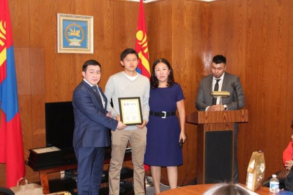 2017 оны 11 дүгээр сарын 19-ний өдөр ЕКГ-аас “Монгол бахархал”-ын өдөрт зориулан Калифорниа мужийн Бэй аэриагийн эрэг орчмын “Монголчуудын холбоо”-той хамтран “Эх түүхээ хэн сайн мэдэх вэ” өдөрлөг зохион байгуулж урлаг, спортын өндөр амжилт үзүүлж буй хүүхэд сурагчдыг болон тэдний эцэг, эхчүүдийг хүлээн авч уулзан зарим сурагчдыг МЗХ-ны “Тэргүүний сурагч” медаль, ЕКГ-ын зүгээс “Шилдэг сурагч” өргөмжлөлөөр тус тус шагнаж урамшууллаа.