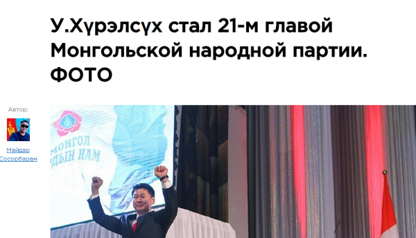 ОХУ-ын Буриад улсын www.asiarussia.ru сайт дээр Монгол Улсын Ерөнхий сайд У. Хүрэлсүх Монгол Ардын намын 15 дахь дарга болов гарчигтай нийтлэл гарчээ.