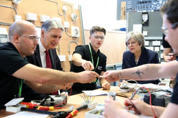 Ерөнхий сайд Тереза Мей барилгын коллежэд ирлээ.
