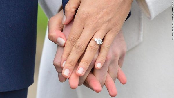 Сурвалжлагчид түүнээс Меганд гэрлэх санал тавьсан агшнаасаа хуваалцаач гэхэд “Тэр үед сэтгэл их хөдөлсөн” хэмээсэн юм. Зурагчид энэ үед тэдний зургийг авсан. Алтан хүрээ, очир эрдэнийн шигтгээтэй хуримын бөгжний загварыг ханхүү Харри гаргасан аж.