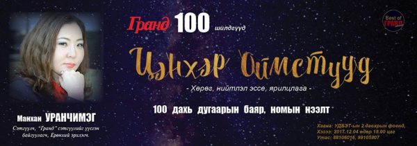 Нийгэмд хийж бүтээсэн бодит зүйлтэй, өөрийн гэсэн орон зай дуу хоолойтой, тийм ч учраас хүлээн зөвшөөрөгдсөн хүмүүсийн амьдралд баримталдаг зарчим, үзэл санаа, дотоод ертөнцийг нээсэн ярилцлага ямар ч цаг үед үнэ цэнээ алдахгүйгээр барахгүй тухайн цаг үеийнхээ түүх болон үлддэг. Эндээс залуу хойч үе, нийгэм олон нийт шинэ санаа, гэгээн өөдрөг үзэл, амьдралд итгэх итгэл олж авдаг нь ийм төрлийн ярилцлагуудын гол үнэ цэнэ байдаг. Чухам ийм үнэ цэнэтэй ярилцлагуудыг түүвэрлэж эмхэтгэсэн “Гранд хүмүүс” номыг 2012 онд “Гранд” сэтгүүлийн эрхлэгч, сэтгүүлч М.Уранчимэг уншигчдын хүртээл болгож байсан бол энэ удаад хоёр дахь номоо “Цэнхэр оймстууд” нэртэйгээр гаргалаа.