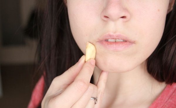 2. Нэг ширхэг сармисыг үрж хоёр халбага устай холино. Нүүрээ угааж хуурай болсны дараа бэлэн болсон хольцыг нүүрэндээ түрхэнэ. Сармис нь арьсны үхэжсэн эд эсийг гуужуулж сорвитой гадаргыг мөн гуужуулна. Мөн түүнчлэн батгыг үүсгэж байгаа тос болон нянг устгана. Сармистай хандыг 5 минутнаас дээш хугацаанд нүүрэндээ байлгаж болохгүй ба бүлээн усаар нүүрээ угаана.