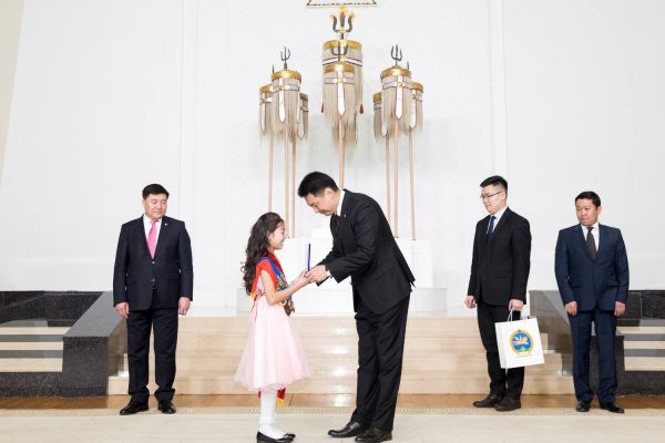 Үндэсний болон олон улс, тив, дэлхийн тавцанд оюун ухаан, мэдээллийн технологи, урлаг, спорт, байгаль хамгаалал, хүмүүнлэгийн үйлсээрээ онцгой амжилт гаргаж, үе тэнгийнхнээ манлайлсан 2017 оны шилдэг хүүхдүүдэд Хүүхдийн төлөө үндэсний зөвлөлийн тэргүүн, Монгол Улсын Ерөнхий сайд У.Хүрэлсүх баяр хүргэж, шагнал гардууллаа.